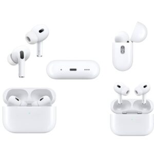 Conçus pour un confort optimal, les AirPods Pro 2 sont livrés avec quatre tailles d’embouts en silicone (XS, S, M, L) afin de s’adapter à toutes les oreilles. Leur design résistant à la transpiration et à l’eau (IPX4) les rend parfaits pour une utilisation quotidienne ou sportive.